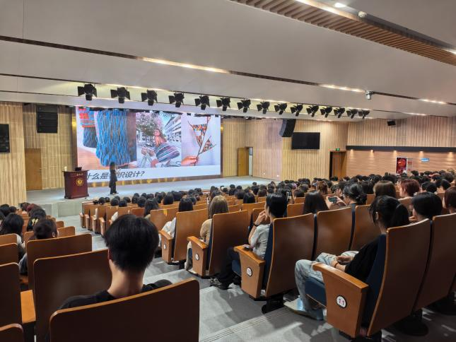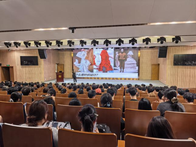 2025年10月13日晚,应嘉兴大学设计学院邀请,浙江织研时装设计有限公司主理人、全国十佳设计师刘彦君女士为同学们带来了一场题为《针织启蒙·设计师赛记》的专业讲座。讲座围绕针织设计启蒙导论、针织设计核心基础、针织设计原则与思路、获奖作品赏析四个维度展开,通过生动的实际案例和个人经历分享,特别是对“时尚盛典总决赛”系列作品《你好》的深入解析,赢得了全场的热烈反响。该作品以“丝路新语”为主题,匠心独运,成为大赛中首个获得满分的作品。