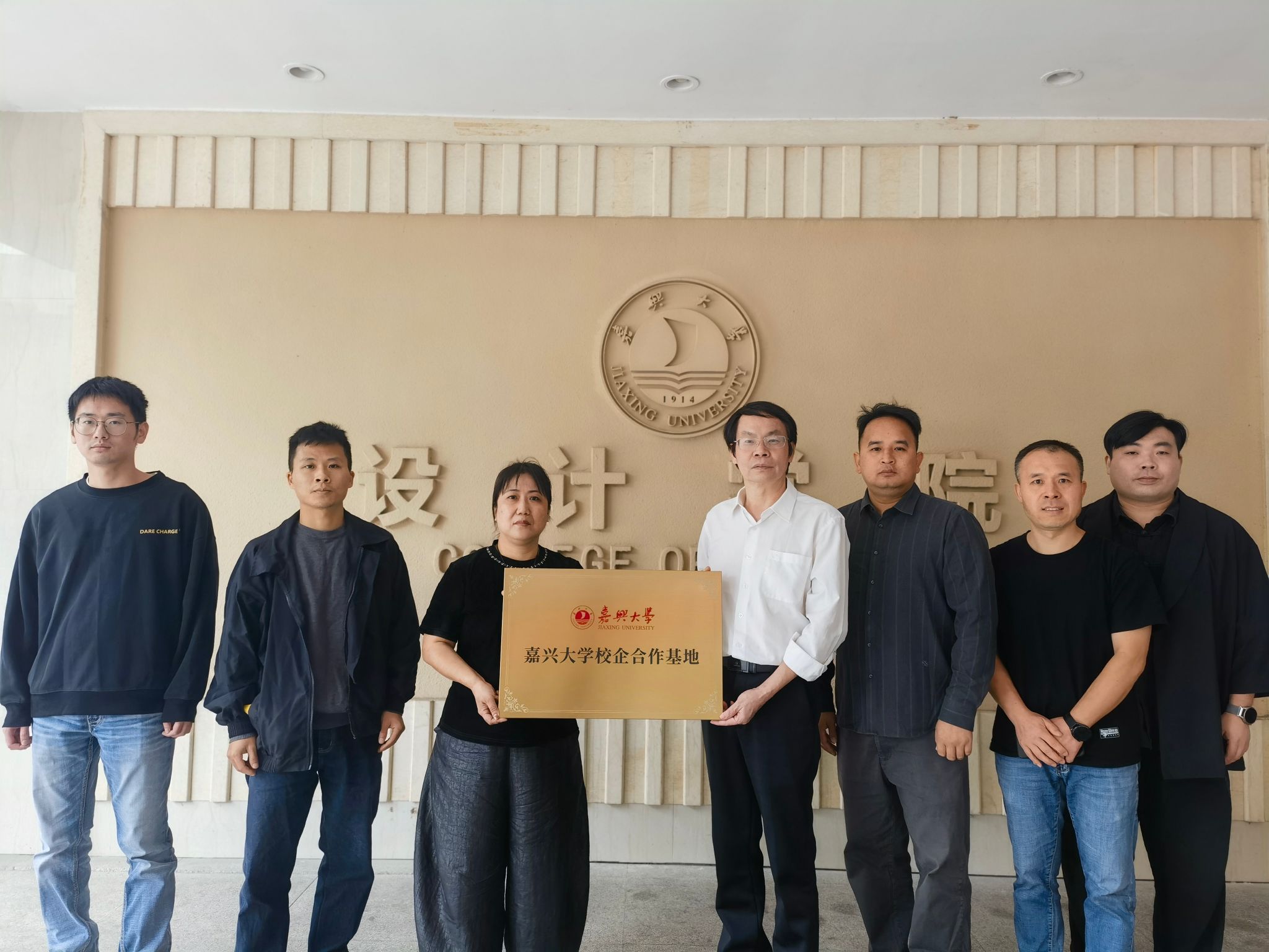 近日,韦浩院长带领工业设计系教师团队与浙江帝豪达服饰股份有限公司进行了校企合作交流,并举行了“嘉兴大学校企合作基地”校企合作授牌仪式。