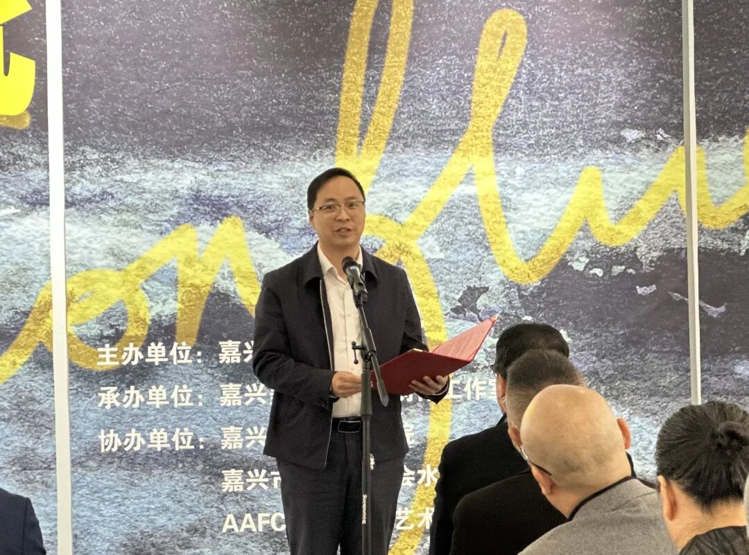校党委委员、副校长王立玮,校原党委副书记吴云达,设计学院院长韦浩、党委书记蒋建其、副院长裘玉英,嘉兴市原文化广电局局长王鸣霞,嘉兴市文化广电旅游局二级调研员周红霞,嘉兴市文联二级调研员傅琦红,嘉兴市侨联秘书长李勇军,嘉兴市文化广电旅游局公共服务与艺术处副处长陈体益,嘉兴美术馆党支部书记、副馆长许大文,嘉兴市书法家协会名誉主席傅其伦,嘉兴市美术家协会主席吴国祥,重水美术馆馆长邱见等领导嘉宾出席开幕式。活动由嘉兴美术馆学术展览部负责人汪新宇主持。