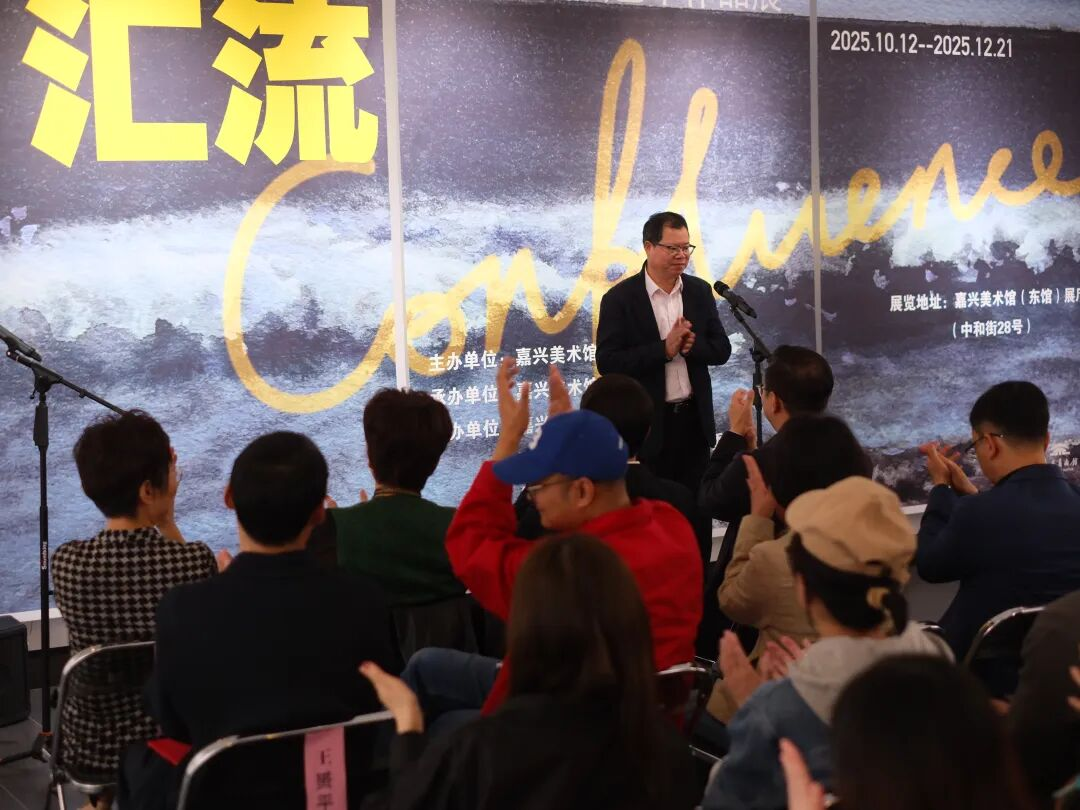 2025 年11月8日下午,“汇流:王赟平旅法艺术作品展” 在嘉兴美术馆(东馆)展厅二楼正式开幕。本次展览由嘉兴美术馆主办,嘉兴美术馆美术创作工作室承办,嘉兴大学设计学院、嘉兴市美术家协会水彩画艺委会、法国中法艺术联盟 AAFC协办,是一场兼具学术价值与文化传播意义的艺术交流活动。