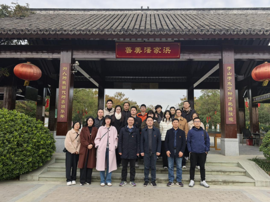 随后,党员教师一行前往全国文明村潘家浜村,实地感受 “千万工程” 引领下的乡村振兴蝶变。曾经的 “养猪村” 如今已蜕变为 “桑梓情・养心地・梦里水乡”,千年梓树苍劲挺拔,宋代古井清泉流淌,老知青馆等场馆错落有致,38 家农家乐、民宿及特色业态勾勒出 “美丽经济” 的蓬勃图景。党员教师们围绕 “乡村文化 IP 打造”、“传统工艺创新设计” 等话题开展深入交流,探讨将专业优势融入乡村文化建设的路径。