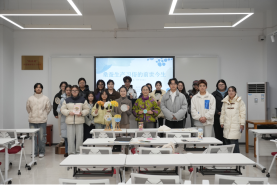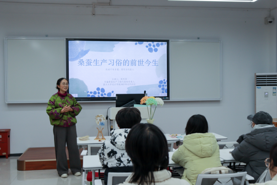 嘉兴大学设计学院长期深耕非遗文化教学与产学研融合,以浙江省非物质文化遗产传承教学基地为核心平台,持续探索“非遗+美育+实践”的育人路径。12月25日,由嘉禾文化育人联盟指导、学院非遗传承教学基地策划的“蚕桑生产习俗的前世今生”讲座顺利开展。活动由基地负责人周琳博士全程策划并主持,特邀嘉兴大学特聘非遗专家、秀洲区天福蚕桑生产习俗代表性传承人周利萍老师主讲,同学们沉浸式感受千年非遗的匠心魅力与当代活力。