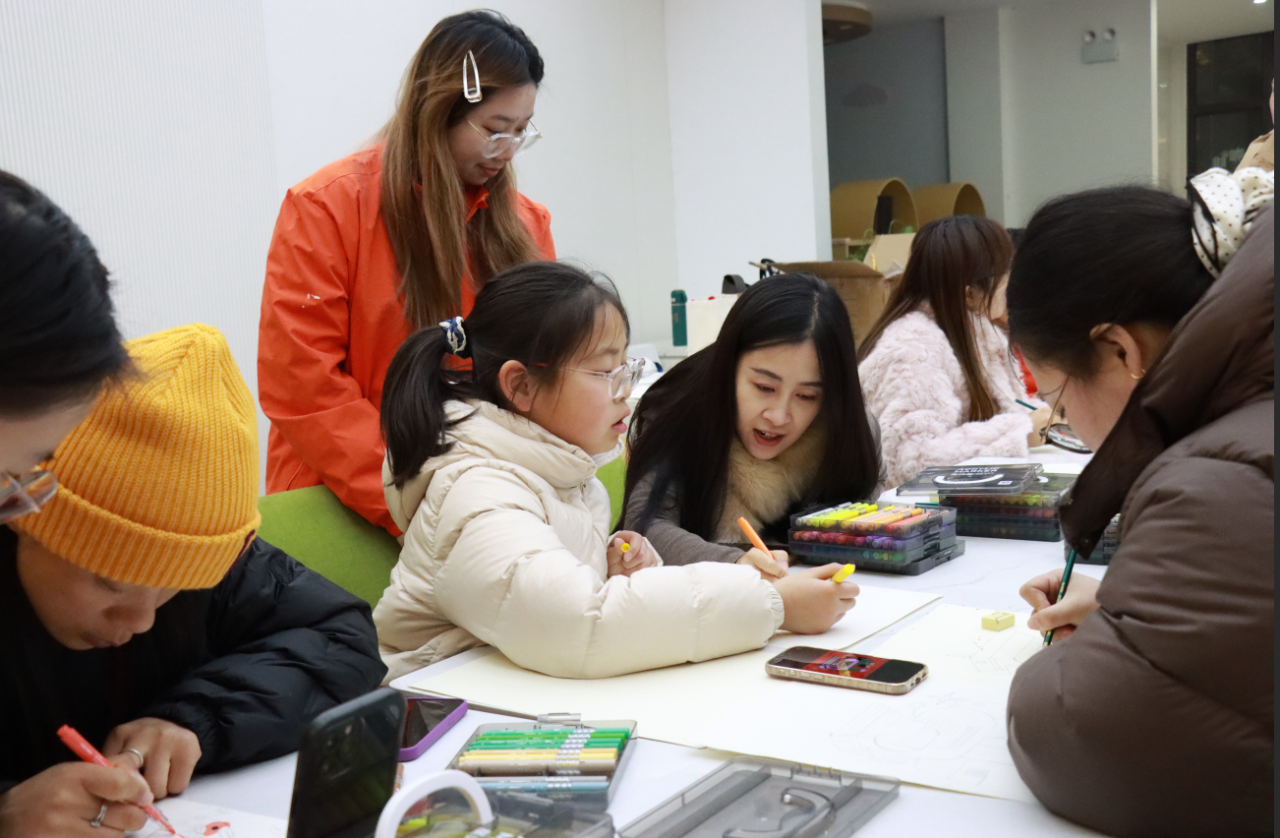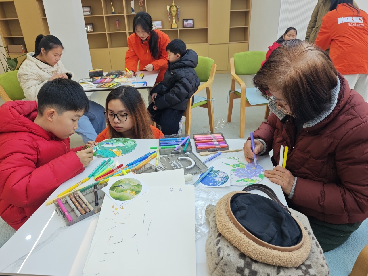 周琳从农民画的历史与地域特色讲起,结合本土生活场景,解析其“构图夸张、色彩饱满、题材鲜活”的艺术特点。她从线条到色彩,从构思到细节,一步步带领居民入门。现场学员年龄跨度虽大,但都专注听讲、提笔练习,不时互相交流或向老师提问。“在家门口就能跟着大学老师学非遗,既长了手艺,也感受到了传统文化的气息。”正在勾画草图的居民王阿姨笑着说。