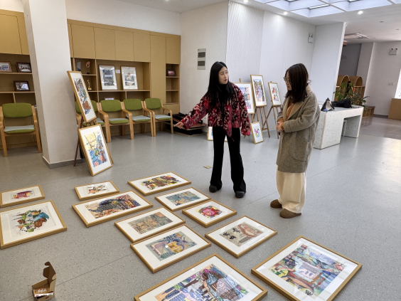 周琳老师表示,此次布展是学生全程参与项目策划、作品遴选、空间设计和落地执行的一次“真题实做”锻炼,让他们在服务社区的过程中提升专业能力、增强社会责任感。布展之余,周琳老师还与社区商定了“15分钟文化生活圈”功能区的规划方案,未来将结合环境设计专业优势,对社区公共空间进行微更新与艺术赋能。